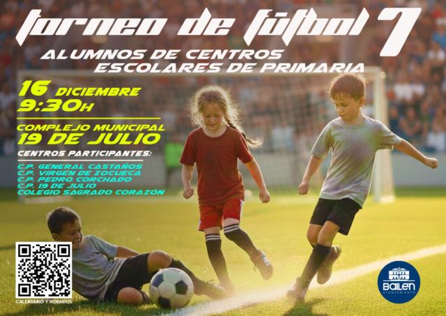 El Ayuntamiento de Bailén, a través de la Concejalía de Deportes que gestiona Manuel Rodríguez, ha anunciado la celebración del Torneo de Fútbol 7 para alumnos de centros escolares de Primaria; “una iniciativa que busca promover la práctica deportiva, la convivencia entre escolares y los valores del trabajo en equipo desde edades tempranas”.