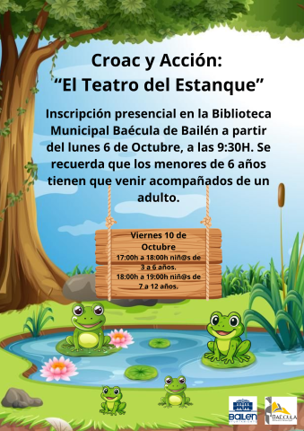La Concejalía de Cultura del Ayuntamiento de Bailén, bajo la dirección de María Teresa Risueño, ha organizado una nueva iniciativa infantil en las dependencias de la Biblioteca Municipal Baécula. En concreto, se trata del Taller ‘Croac y Acción: El teatro del estanque’’; una divertida y creativa actividad lúdica y educativa que, tal y como ha destacado la edil, “tiene como objetivo el aprendizaje a través de la diversión”.