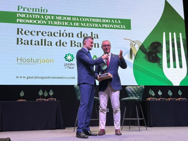 La Recreación de la Batalla de Bailén ha sido reconocida por la Asociación Empresarial de Hostelería y Turismo de Jaén ‘HosturJaén’ con el premio a la iniciativa que mejor ha contribuido a la promoción turística de la provincia de Jaén. El alcalde, Luis Mariano Camacho, fue el encargado de recoger este galardón que ha querido dedicar a todo el pueblo de Bailén, “por defender su historia”, a todos los equipos de Gobierno de la ciudad, “por creer y potenciar este evento único” y a todos los recreadores, bailenenses, asociaciones y colectivos “por su participación, compromiso y rigor histórico con el que celebran este gran acontecimiento”.