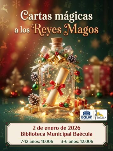El Ayuntamiento de Bailén, a través de la Concejalía de Cultura, gestionada por María Teresa Risueño, ha organizado el taller infantil ‘Cartas mágicas a los Reyes Magos’; una actividad cultural y creativa dirigida a los más pequeños que tendrá lugar el viernes 2 de enero de 2026 en la Biblioteca Municipal Báecula.