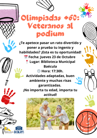 La Concejalía de Cultura, dirigida por María Teresa Risueño, ha organizado una nueva actividad destinada a los mayores de la localidad. Se trata del taller ‘Olimpiadas+60: Veteranos al podium’, destinada a mayores de 60 años y que, tal y como ha destacado la edil responsable del Área, “será una jornada pensada para disfrutar, compartir y demostrar que la edad no es un límite, sino una oportunidad”.