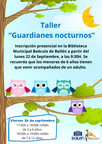 La Concejalía de Cultura del Ayuntamiento de Bailén, bajo la dirección de María Teresa Risueño, ha organizado una nueva iniciativa infantil en las dependencias de la Biblioteca Municipal Baécula. En concreto, se trata del Taller ‘Guardianes nocturnos’; una actividad lúdica y educativa que, tal y como ha destacado la edil, “la hemos diseñado para despertar la imaginación y el sentido de la aventura en los más pequeños”.